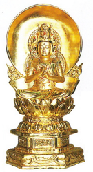 光背の中心部が欠損し、台座も壊れ、お鼻も欠けていました。修繕として漆塗装の上、金箔と金粉で仕上げ、美しく復元しました。